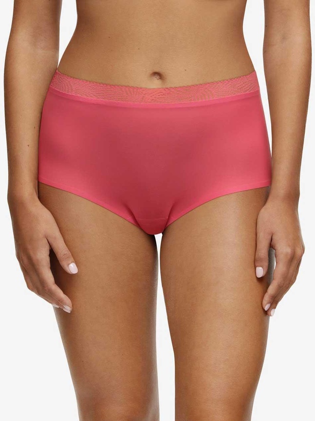 SoftStretch serien fra Chantelle er en anerkendt, prisvindende serie - kendt for sin elasticitet og gode pasform. Serien er designet med udgangspunktet i komfortable pasformer, åndbare materialer og innovative løsninger for at sikre høj komfort. Denne højtaljede trusse er en ny version af den oprindelige trusse, der grundet de tidløse, bløde blonder i taljen har et mere feminint og moderne look. Det er den mest dækkende trusse i SoftStretch serien grundet den høje skæring i taljen og samme dækkende skæringer på henholdsvis ben og baller. Yderst brugbar under kjoler og højtaljede nederdele eller bukser.